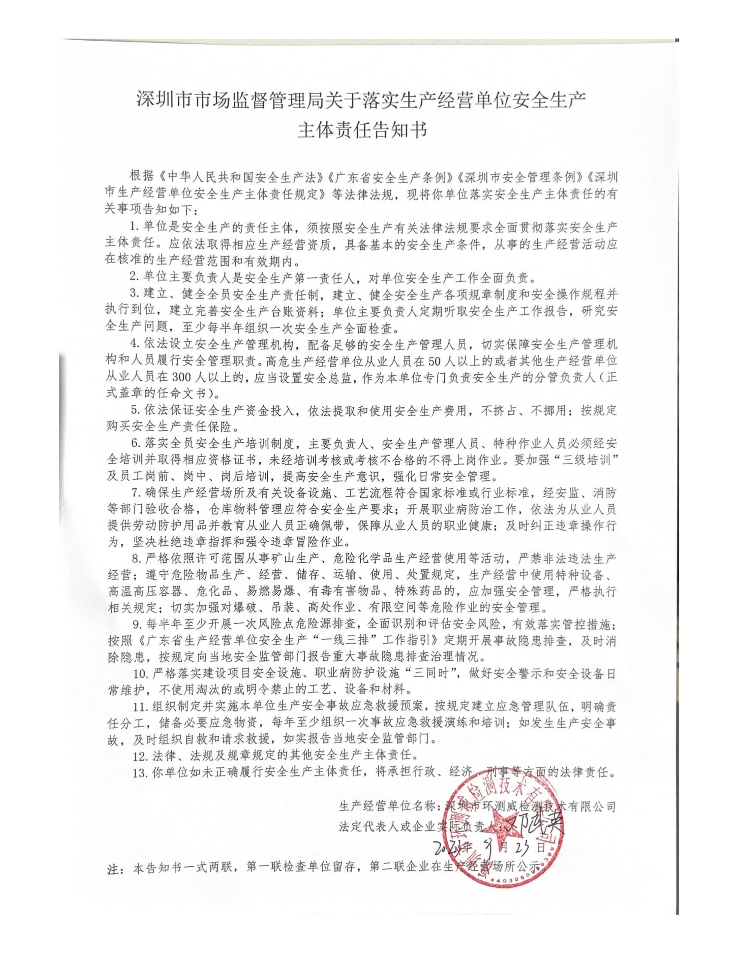 深圳市市場(chǎng)監(jiān)督管理局關(guān)于落實(shí)生產(chǎn)經(jīng)營(yíng)單位安全生產(chǎn)主體責(zé)任告知書(shū)
